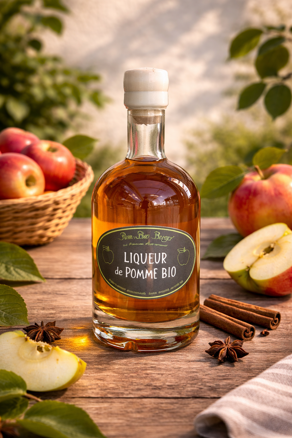 Liqueur de Pomme BIO, fabrication artisanale sans arôme artificiel 18%/vol.